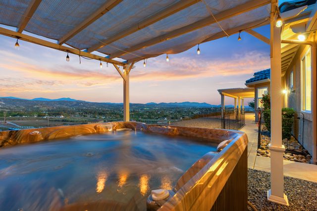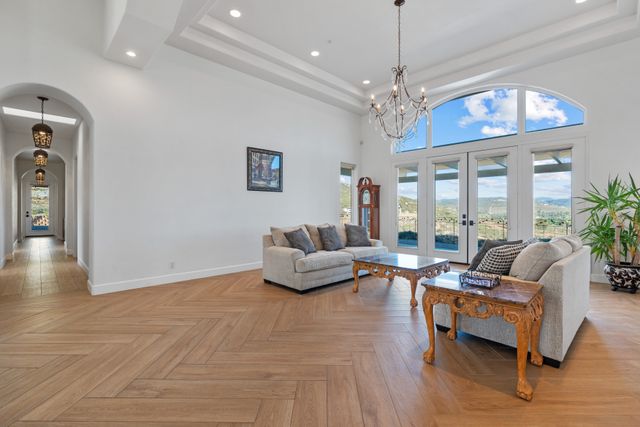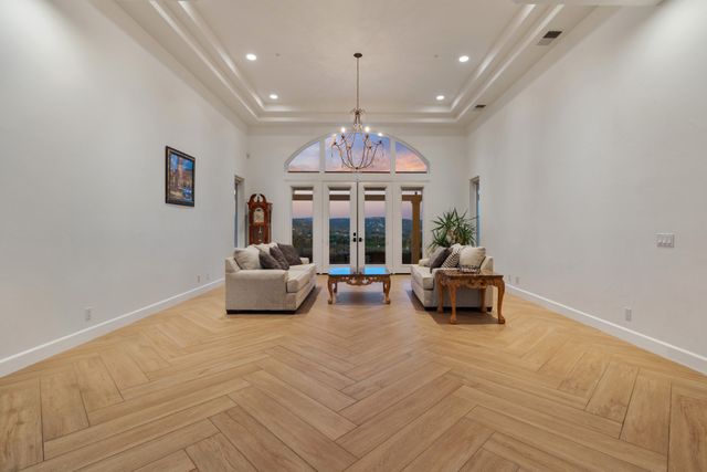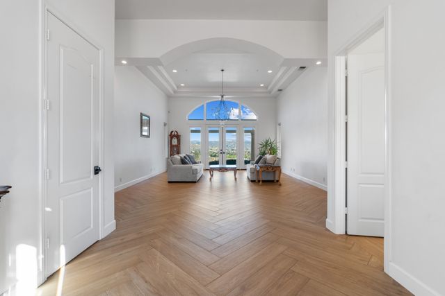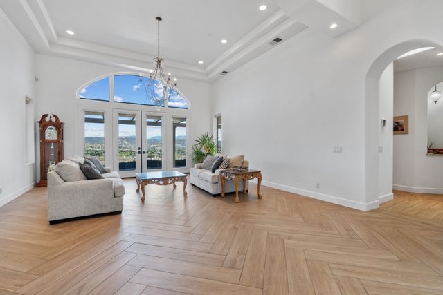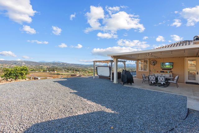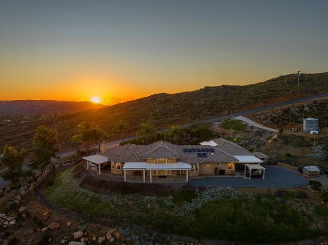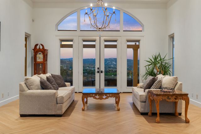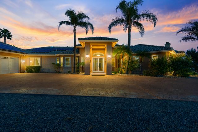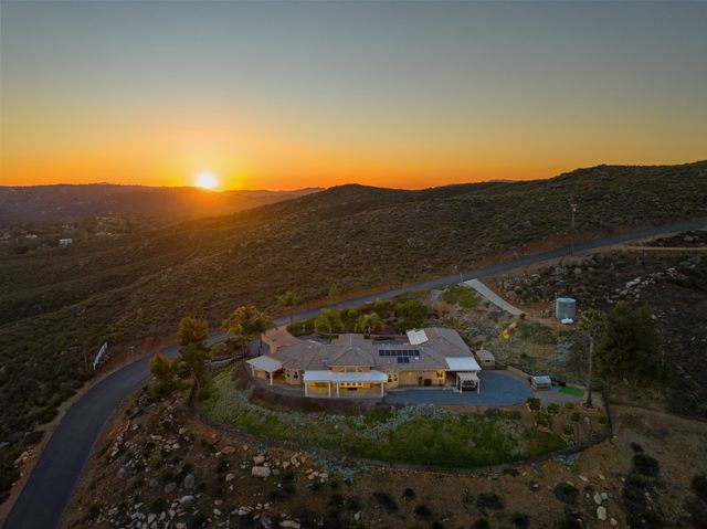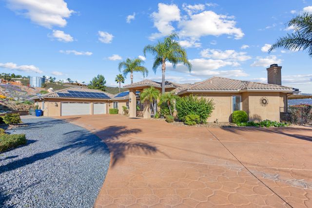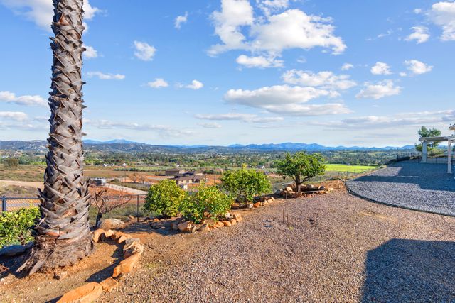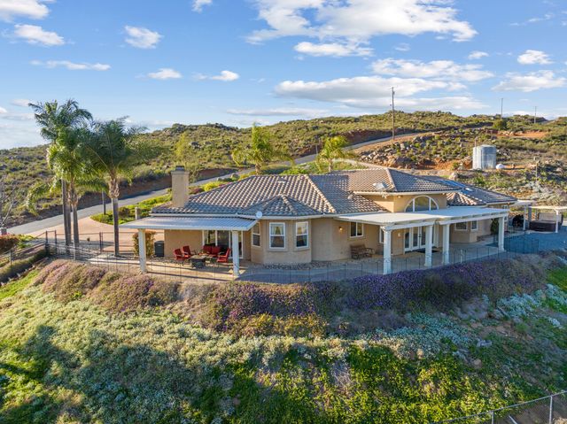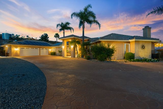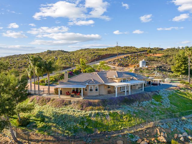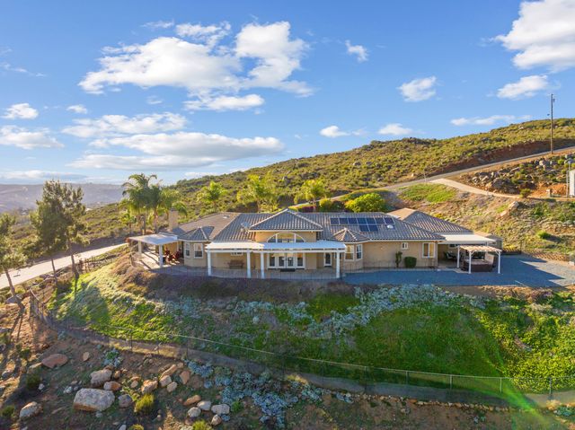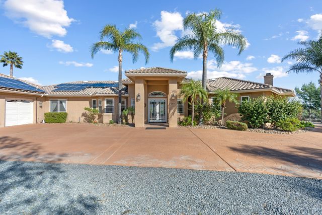 Welcome to 2255 Los Altos de Cerro, an exquisite Mediterranean estate nestled within the prestigious gated community of Valley View Estates. This expansive single-story residence embodies the ideal luxury Ramona lifestyle, offering the perfect balance of privacy, sophistication, and self-sufficiency. Step inside to soaring 15-foot ceilings, stunningly grand windows, and herringbone flooring that adds to the home’s timeless elegance. The floor plan flows effortlessly, leading to covered patios that invite you to unwind and experience breathtaking views directly adjacent to the Cleveland National Forest. With 36 owned solar panels, two functional wells, and direct connection to City water, you’ll enjoy the rare luxury of off-grid capabilities without sacrificing modern comfort. Situated on nearly 5 sprawling acres, this property offers endless possibilities—whether you dream of having a vineyard, building equestrian facilities, or even adding a second dwelling. Don’t miss the opportunity to witness the beauty of this extraordinary property in person!